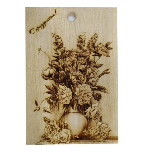 Разделочная доска из цельного кедра Цветы розы на белом фоне